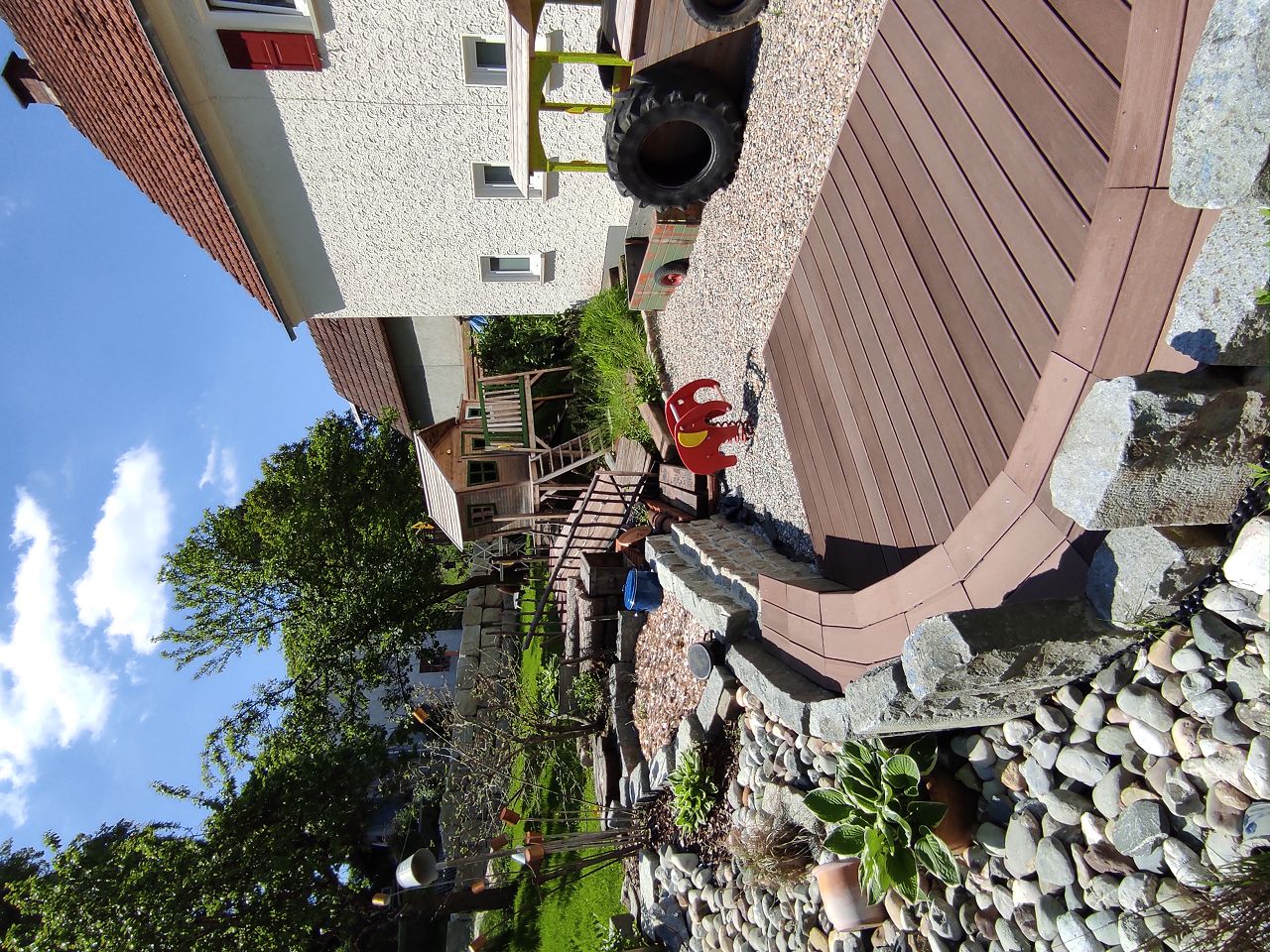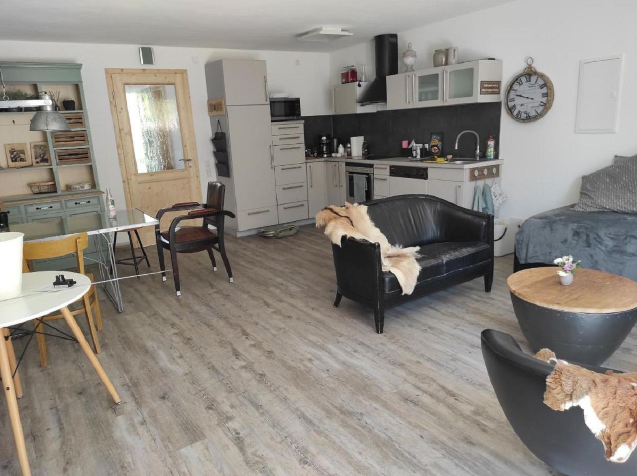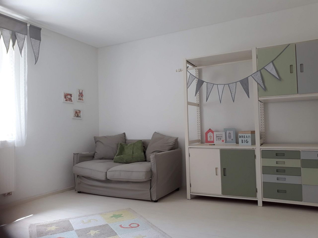 Die ca. 70 qm geräumige Wohnung befindet sich in der restaurierten, ehemaligen Scheune. Sie bietet eine große Wohnküche sowie separate Schlaf- und Kinderzimmer.